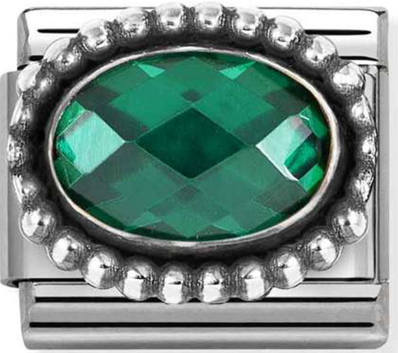 Nomination Classic Silver CZ Vintage Effect Oval Emerald Green Charm