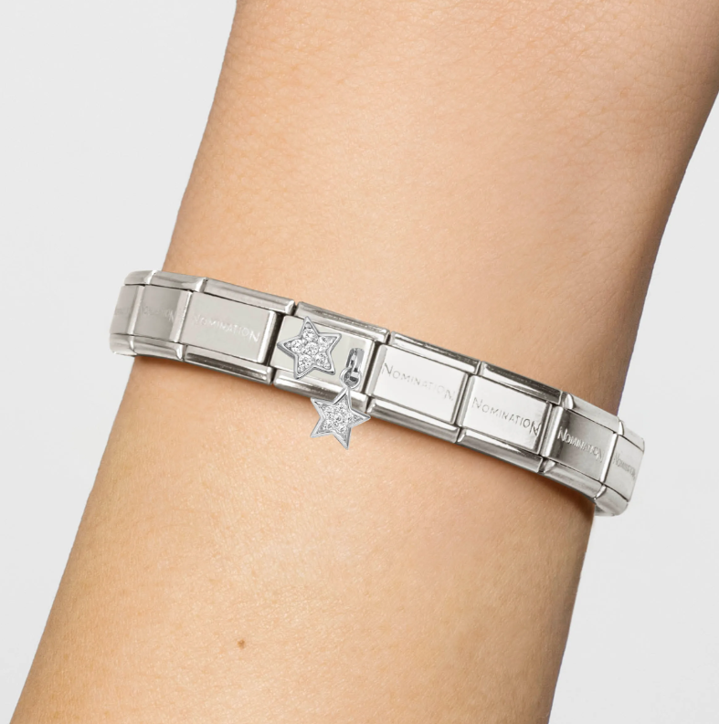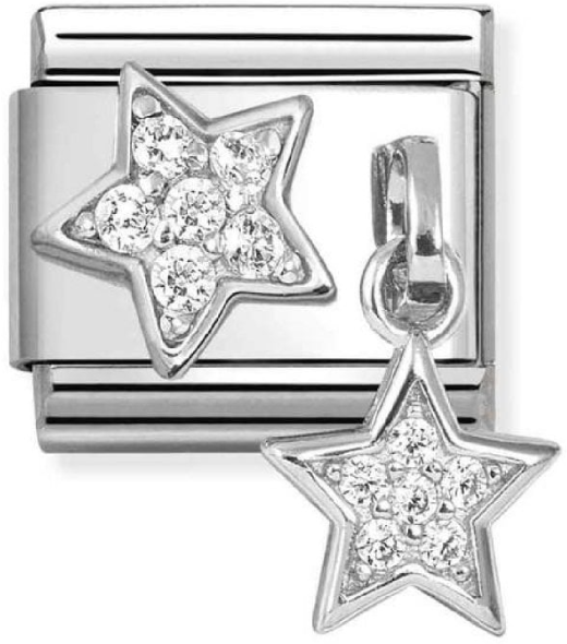 Nomination Classic Silver CZ Pavé Double Star Drop Charm