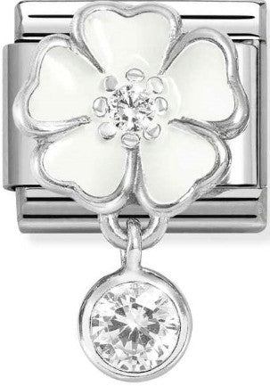 Nomination Classic Silver Enamel White Flower CZ Drop Charm