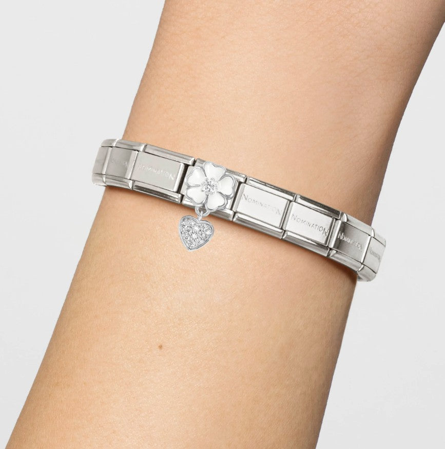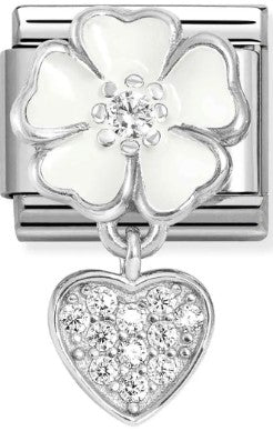 Nomination Classic Silver Enamel White Flower Heart Drop Charm