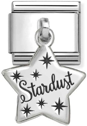 Composable Classic size charm in stainless steel with sterling silver drop Star symbol engraved with Stardust message.