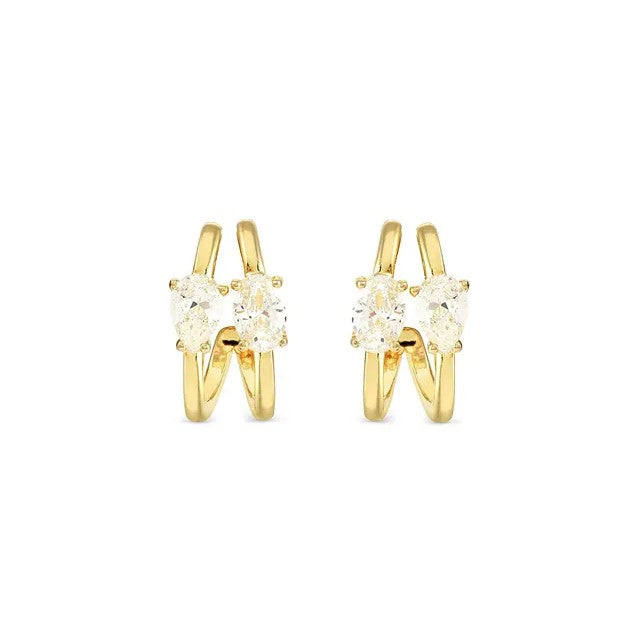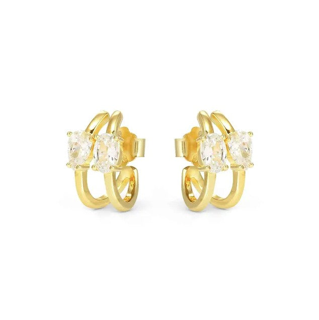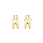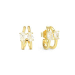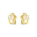 Made in sterling silver and available with yellow gold galvanic plating or white rhodium treated finish, the bright sparkle of these brilliant stones make these earrings the perfect centerpiece for your special evenings.