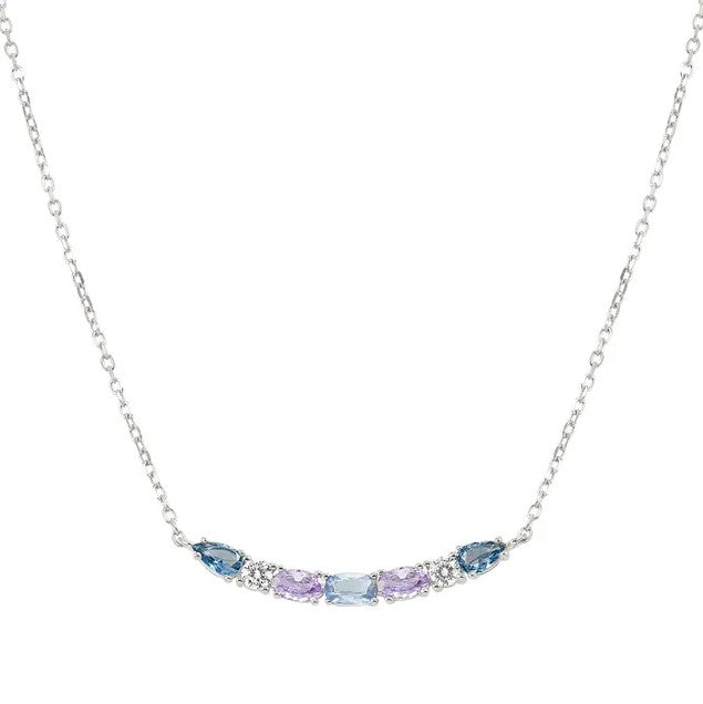 This Nomination Colour Wave Aurora silver necklace with Cubic Zirconia is available in different colour combinations: Pink, Champagne and White or Blue, Light Blue, Violet and White.