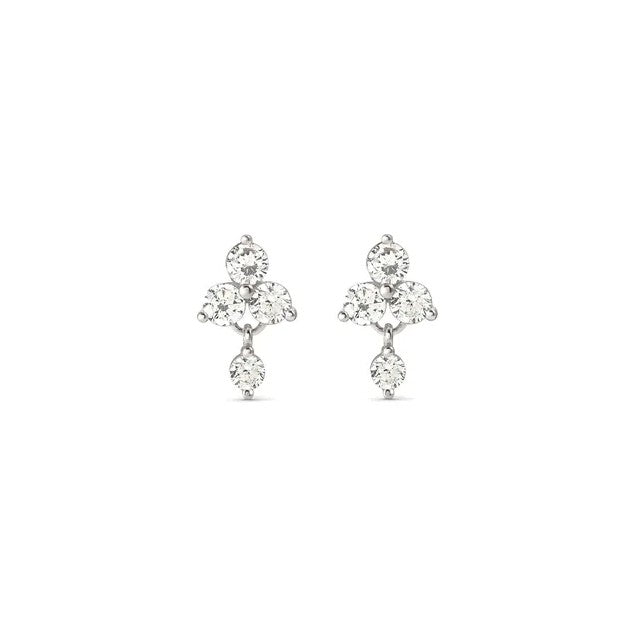Available with yellow gold, rose gold or white rhodium finish applied with galvanic plating process. More than your usual brilliant stone or solitaire earrings, this cluster stud will make you stand out shining in any crowd.