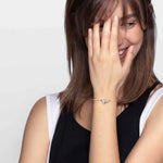 Stainless steel white Cubic Zirconia adjustable length toggle bracelet with LOVE message.