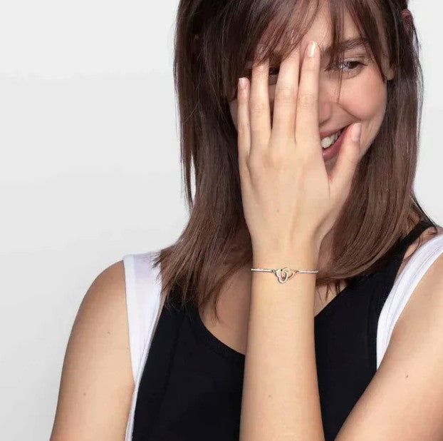 Stainless steel bracelet with LOVE message and Heart with white Cubic Zirconia. Available also with Gold or Rose gold coloured details. The Love message represents the concept of endless affection, whether for a partner, friend or someone special.