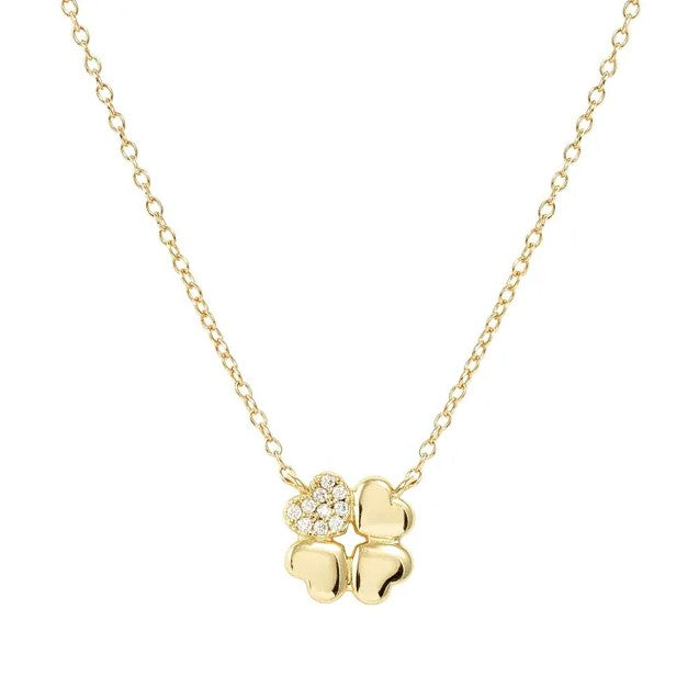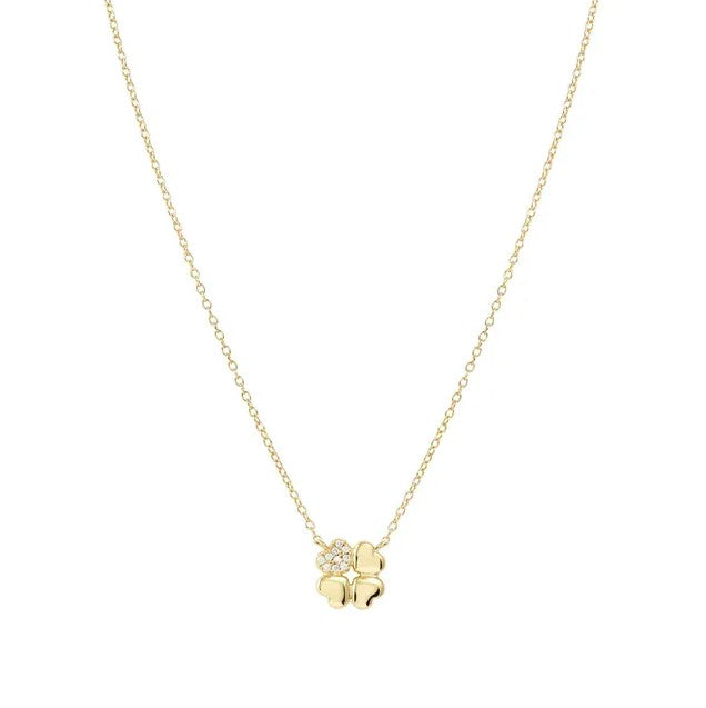Nomination Petite Sparkle Four Leaf Clover Necklace, Sterling Silver Gold Plated CZ