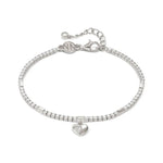 Sterling silver and Cubic Zirconia tennis bracelet with Heart , available with 18K Yellow Gold galvanic plating or White Rhodium treated finish.