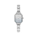 Stainless steel Composable Classic watch with rectangular case and fade glitter light blue face. Features stainless steel bars with Roman Numerals.