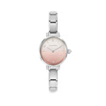 Stainless steel Composable Classic watch with oval case and fade pink face. Features stainless steel bars with numbers and a sparkling cubic zirconia crown.