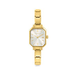 Stainless steel Composable Classic watch with rectangular case and silver sunray face. Features stainless steel bars with Roman Numerals. The watch is PVD plated in yellow gold colour to create a luxe look.