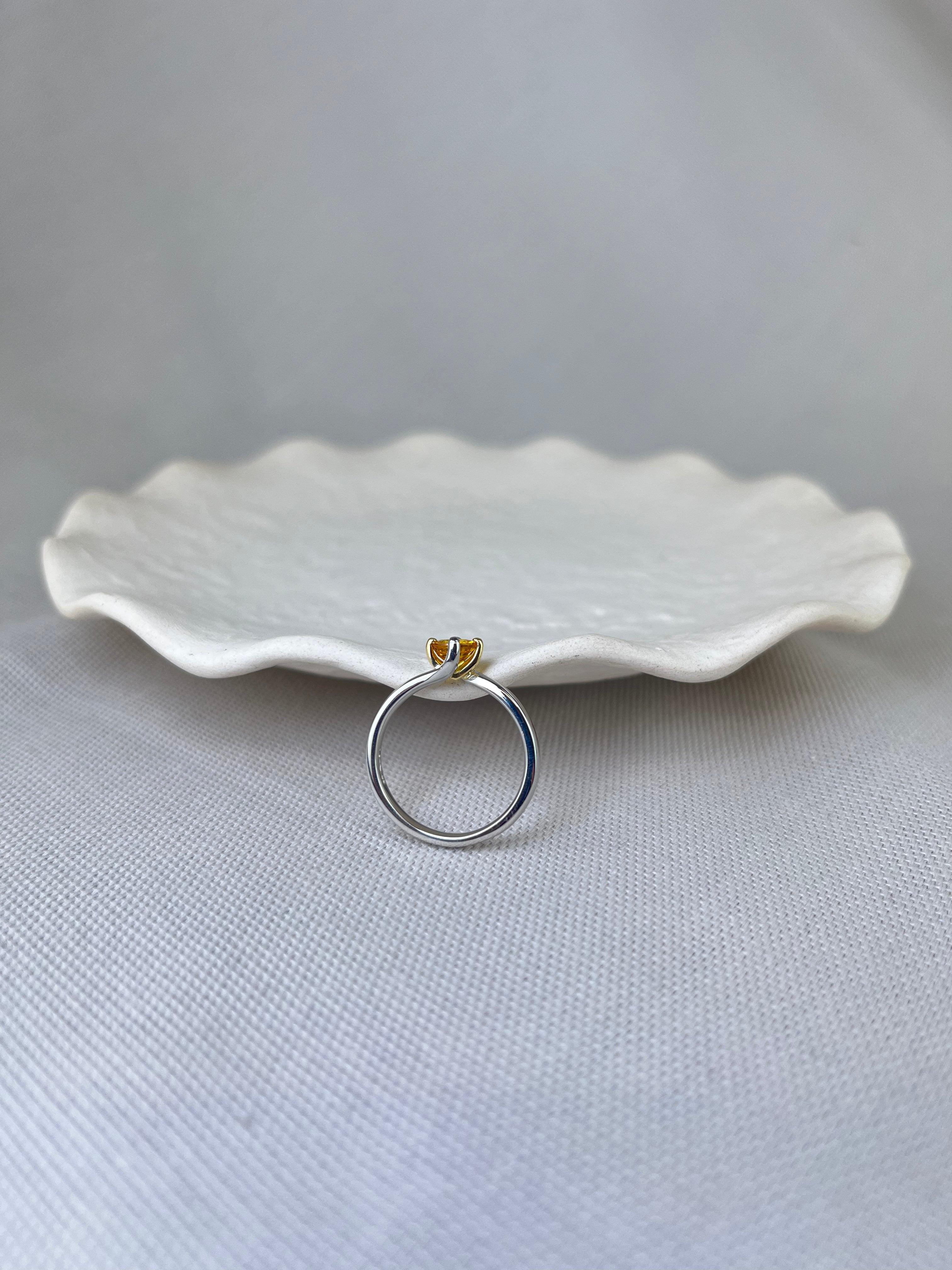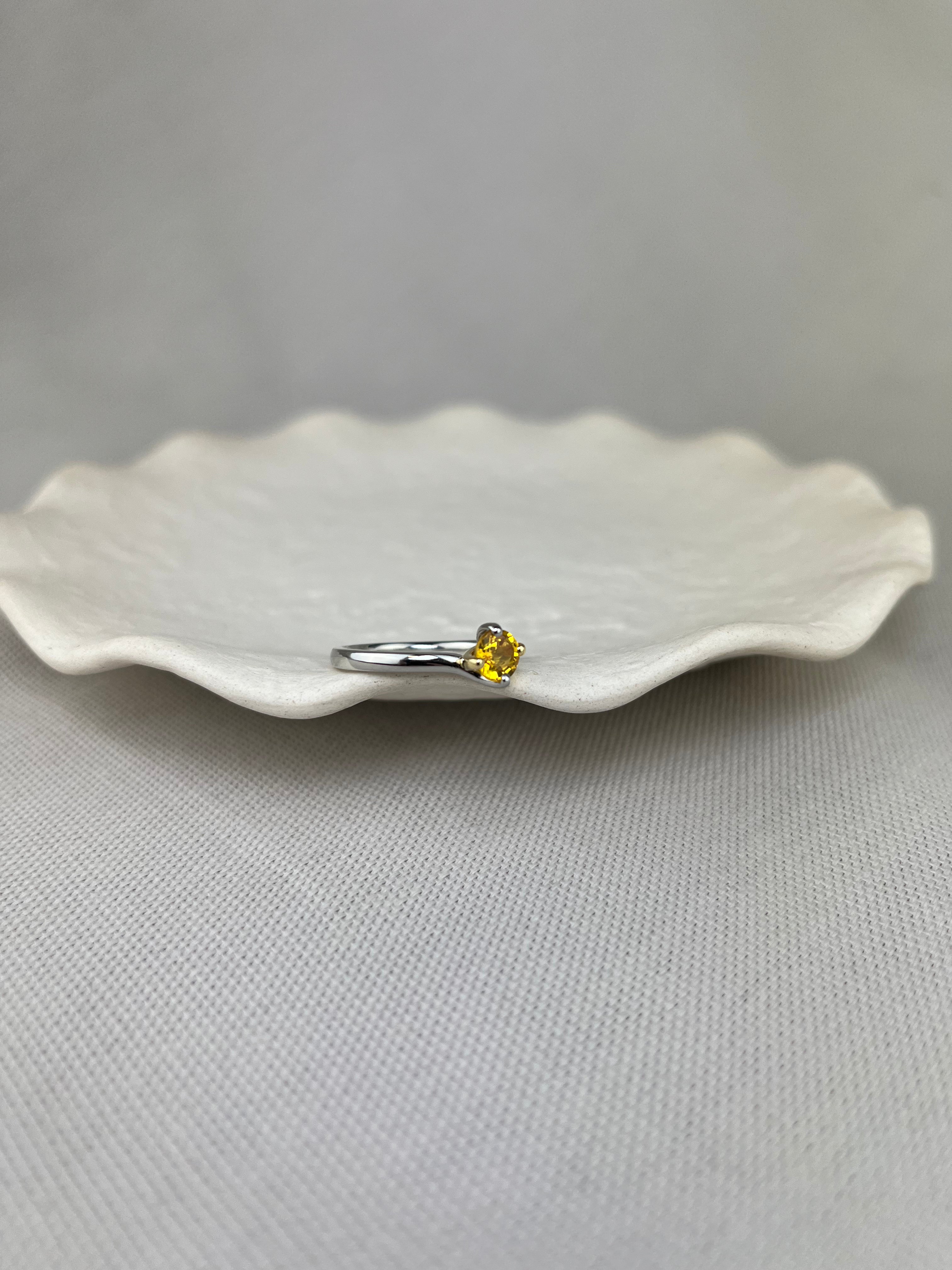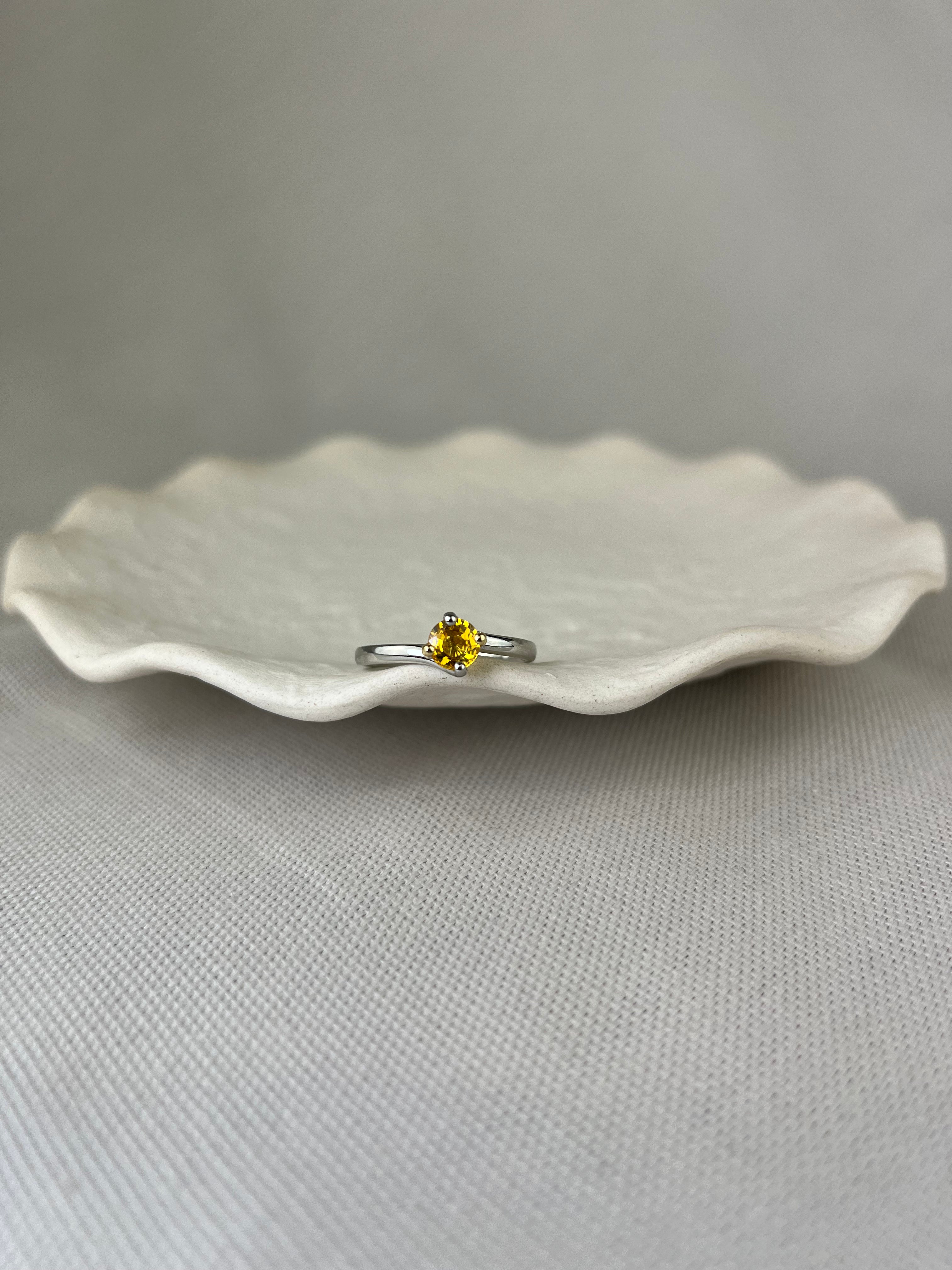 The one true North for this ring is the round vibrant yellow sapphire, accented by a pair of 18ct yellow gold side claws.
