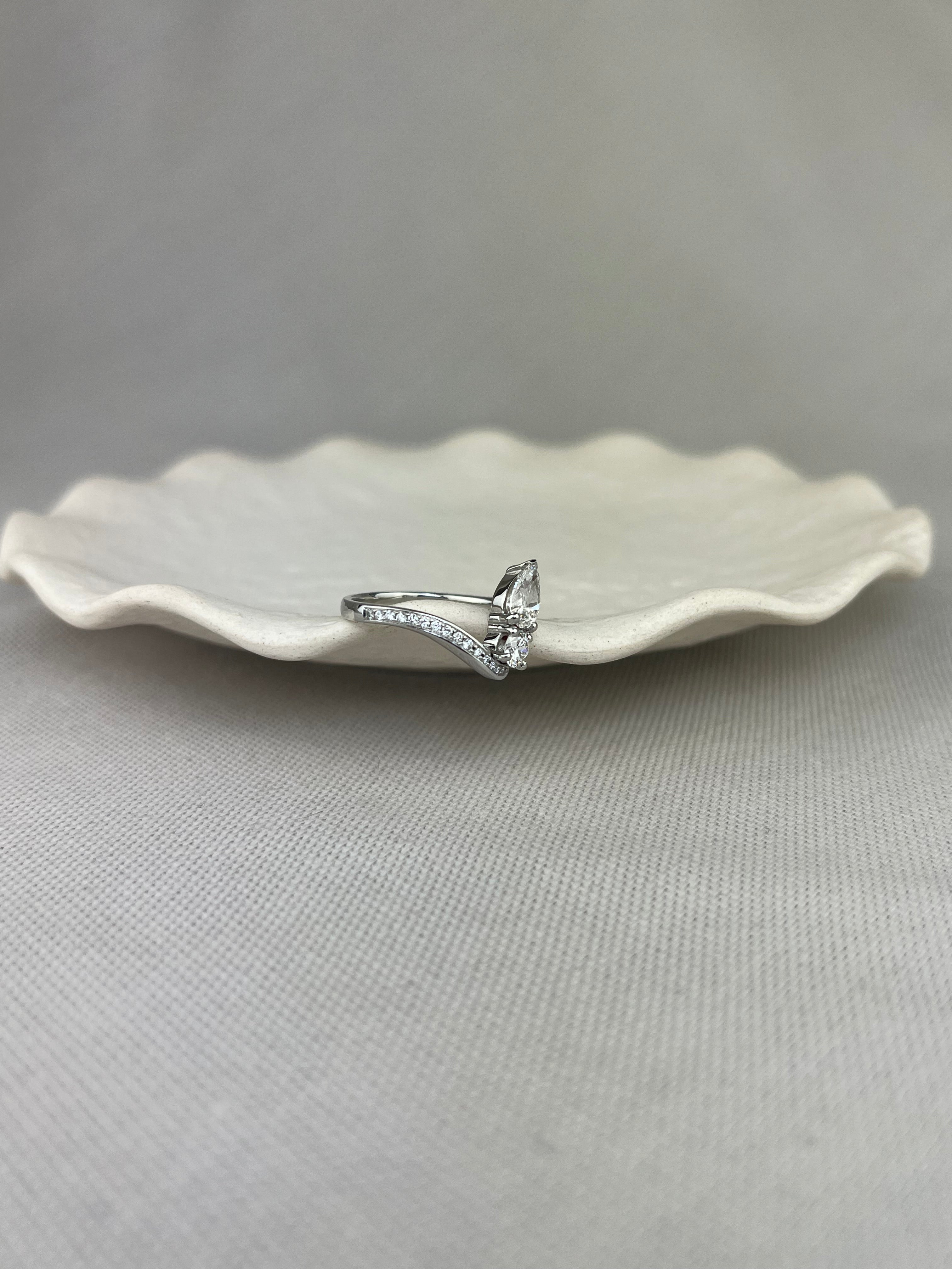 Platinum Diamond Pear Shape Toi Et Moi Two Stone Sparkle Shoulder Ring 1.08ct