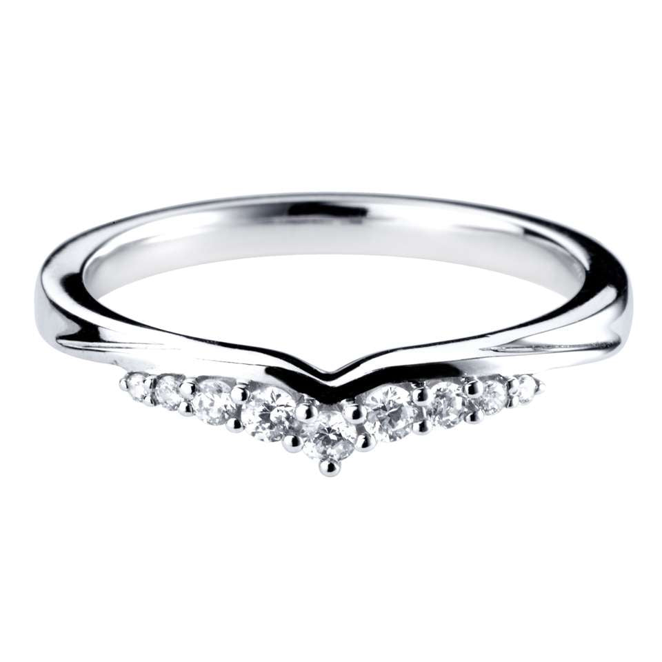 This example is a tiara inspired shaped band with a V silhouette, set with a row of graduated diamonds hugging the outer edge. Available in platinum, you can also choose to have diamonds either G colour with VS clarity, or H colour with SI clarity.