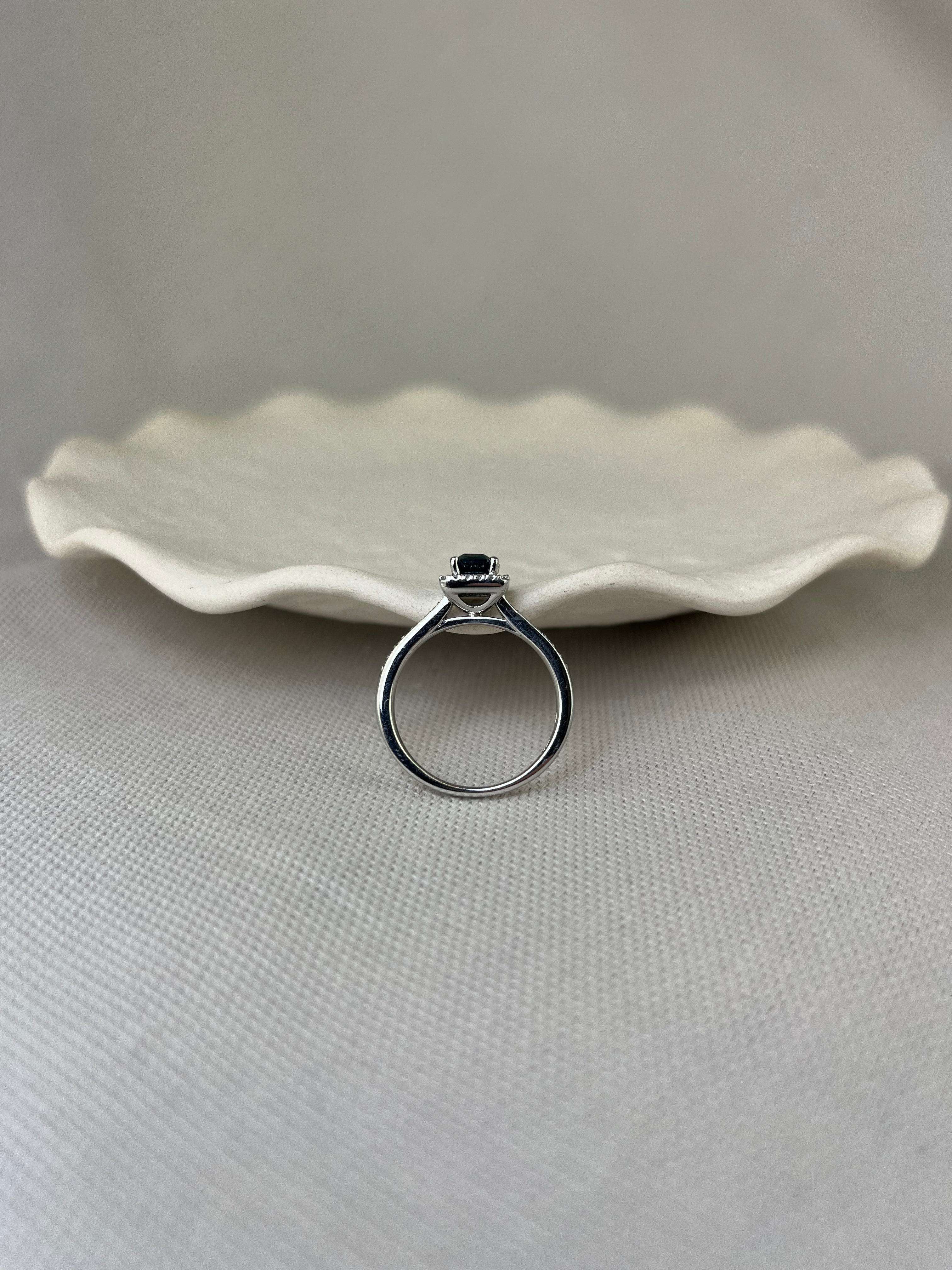 Like many of our designs, this halo ring is wedding ring friendly and can be worn up to a plain straight wedding band.