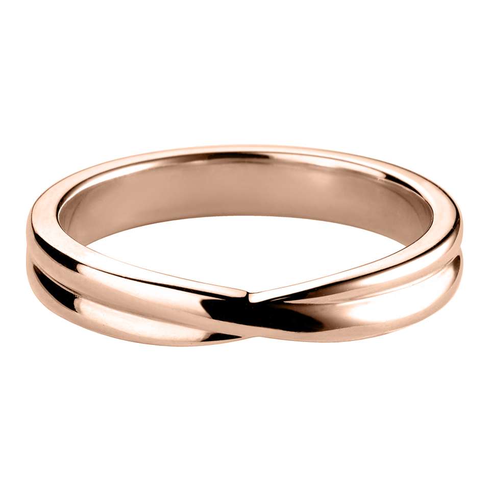 This example is a simple crossover design shaped band with a twist silhouette, available in 9ct or 18ct rose gold.