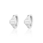 Inspired by Audrey Hepburn’s iconic elegance in Breakfast at Tiffany’s, these sparkling huggie hoop earrings combine 1960s glamour with modern design. Featuring a central colourless baguette-cut cubic zirconia, flanked by three clear stones, these earrings radiate sophistication and sparkle.