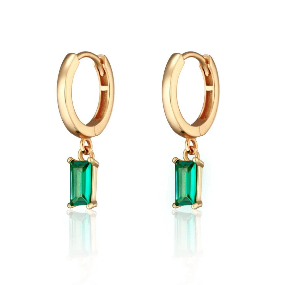Dazzle in emerald green hues with these baguette charm hoop earrings.