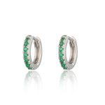 Crafted from 925 sterling silver and available in gold plated silver these green huggie hoops are an easy win on the style front and a contemporary jewellery design everyone loves. Adding some sparkle for a fresh daytime to evening look huggie hoops are comfortable enough to sleep in and look great in cartilage piercings.