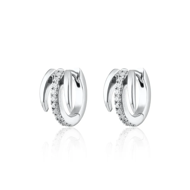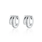 Elevate your earring collection with these illusion claw mini huggie earrings that reimagine classic pavé hoops with a contemporary edge. Each huggie features a sleek split design, with one polished band and one claw-set row of clear stones that creates the illusion of layered styling in a single piece – delivering subtle sparkle.