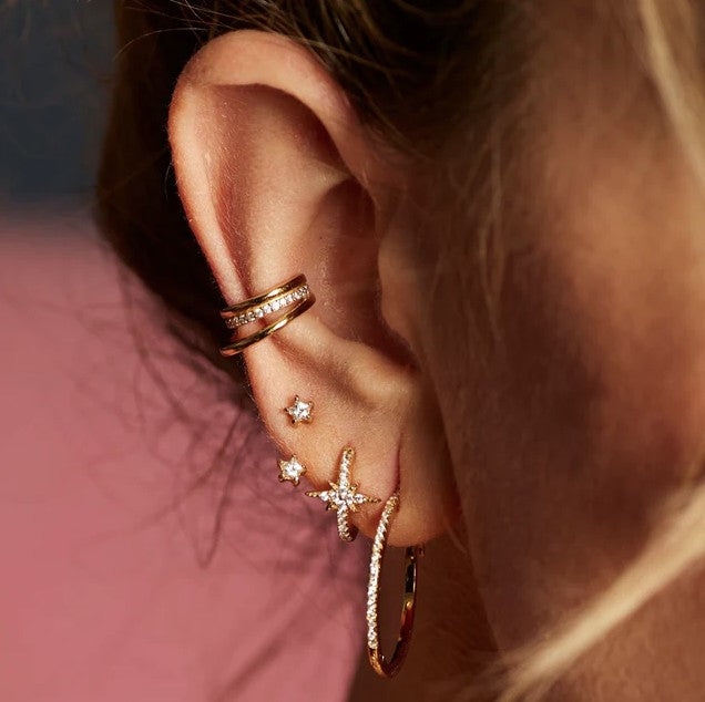 Create an instant ear stack with our illusion ear cuff. A stunning 3-in-1 design with a double plain and sparking band attached to a bigger plain band giving the illusion of three ear cuffs stacked in one neat design.