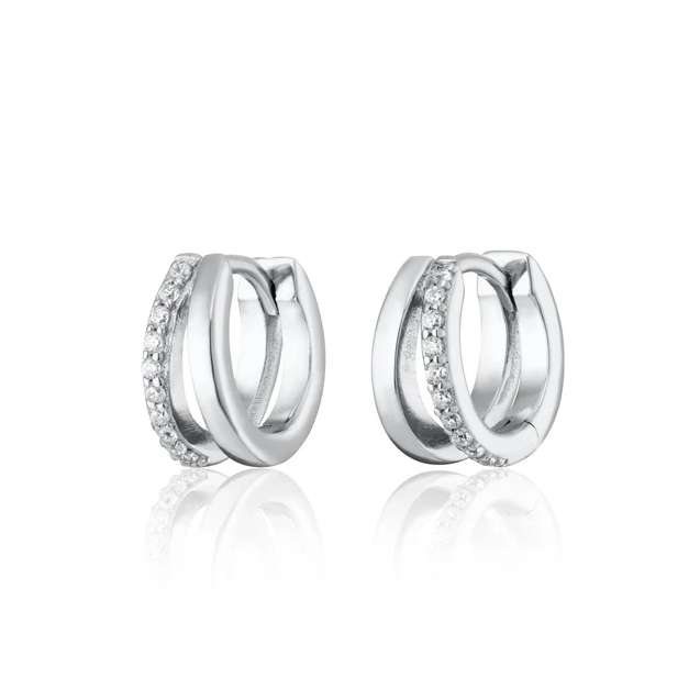 Designed to deceive the eye, these illusion split mini huggie earrings create the look of stacked hoops in a single, streamlined design. Each huggie features a refined split silhouette, combining a smooth polished band with a band set with clear cubic zirconia stones to deliver depth, dimension and unexpected sparkle.