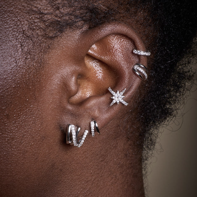 Suitable for upper earlobe, helix, rook & tragus ear piercings