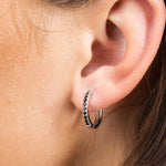 These large huggie hoop earrings with black stones have a wider circumference than our classic mini huggie hoops.