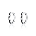 Measuring 15mm in diameter this elegant hoop design features 10 faceted black nano stones to add jet black hues and is cast from sterling silver with the option of 18ct gold plating. A must have jewellery staple!