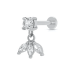 A refined take on classic sparkle, this princess flat back earring is designed to add delicate movement to curated ear looks. Featuring a round clear cubic zirconia stud with a suspended trio of marquise-cut stones, the design creates a soft drop effect that catches the light with every movement.