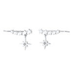 These dainty ear climbers are designed with tapered stars, allow those with one lobe piercing to add a more daring silhouette to their ear stack. The star dangle, set with a single cubic zirconia, adds to the movement and interest of this earring design.