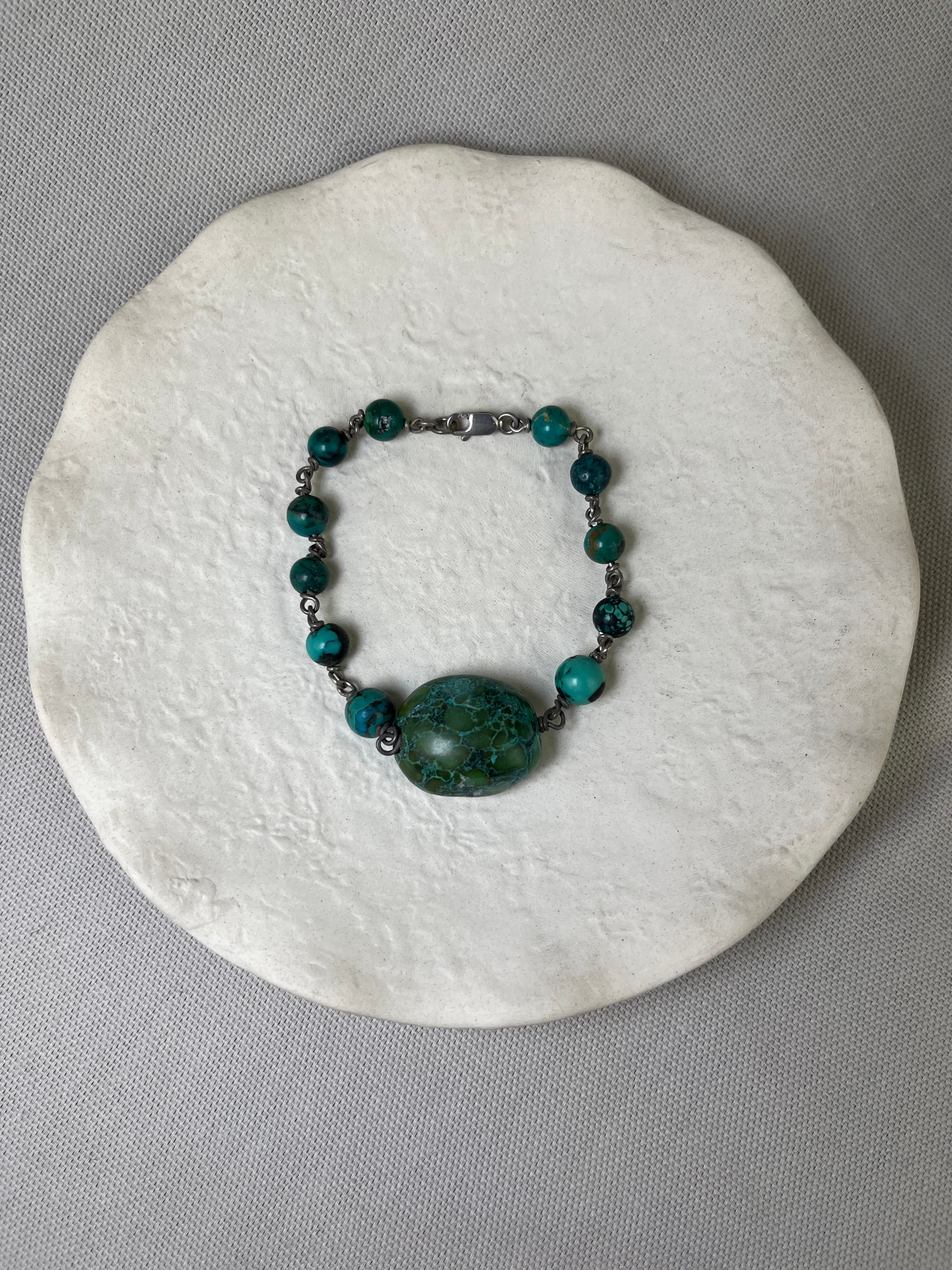 Sterling Silver Boho Turquoise Bead Bracelet SALE