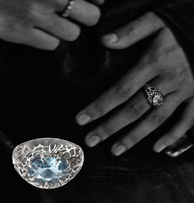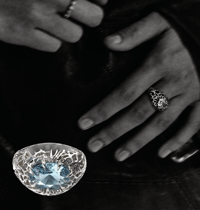 The detailing is made architectural, echoing both sovereign relics and heavy-metal regalia.