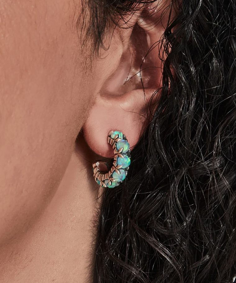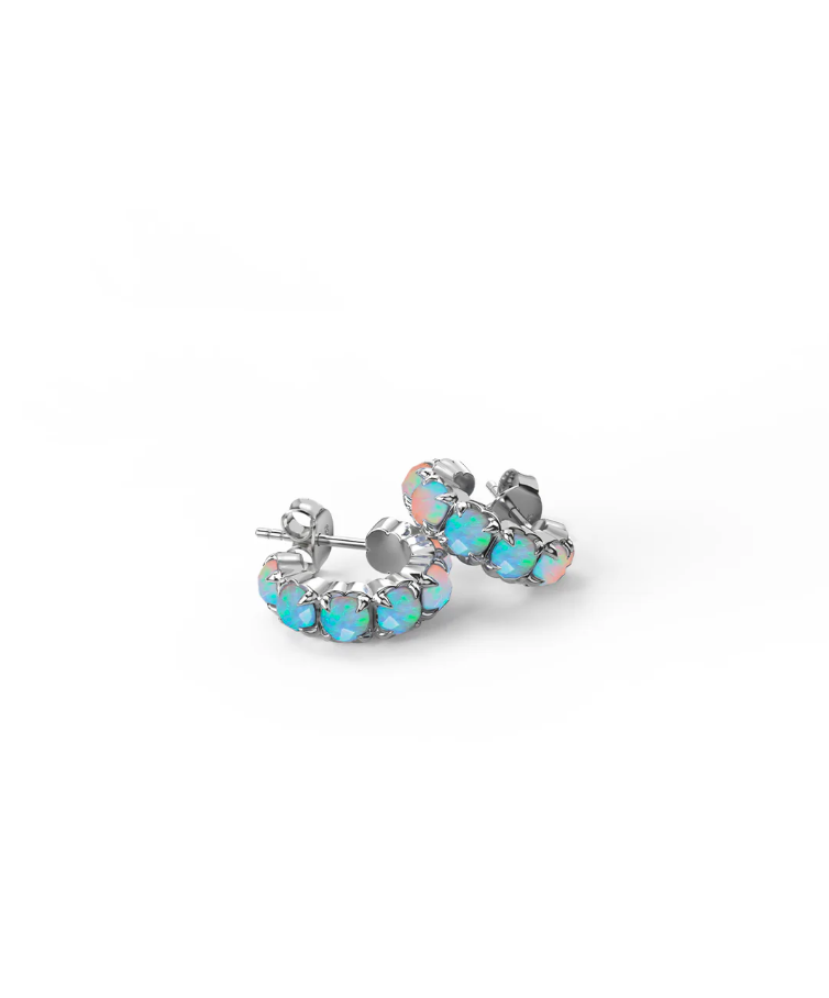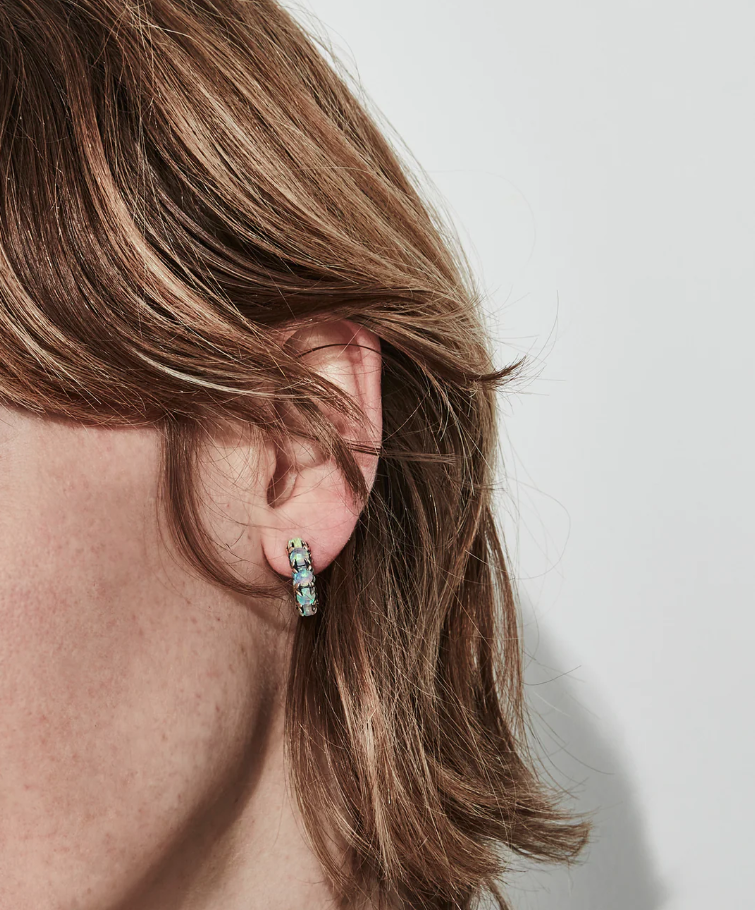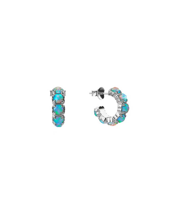 This pair of tough-yet beautiful Huggie earrings showcase a luminous cluster of Bello Opal stones, casting hues of green, blue, pink and flashes of purple secured in a solid silver setting.