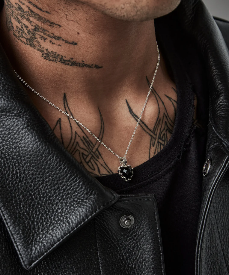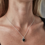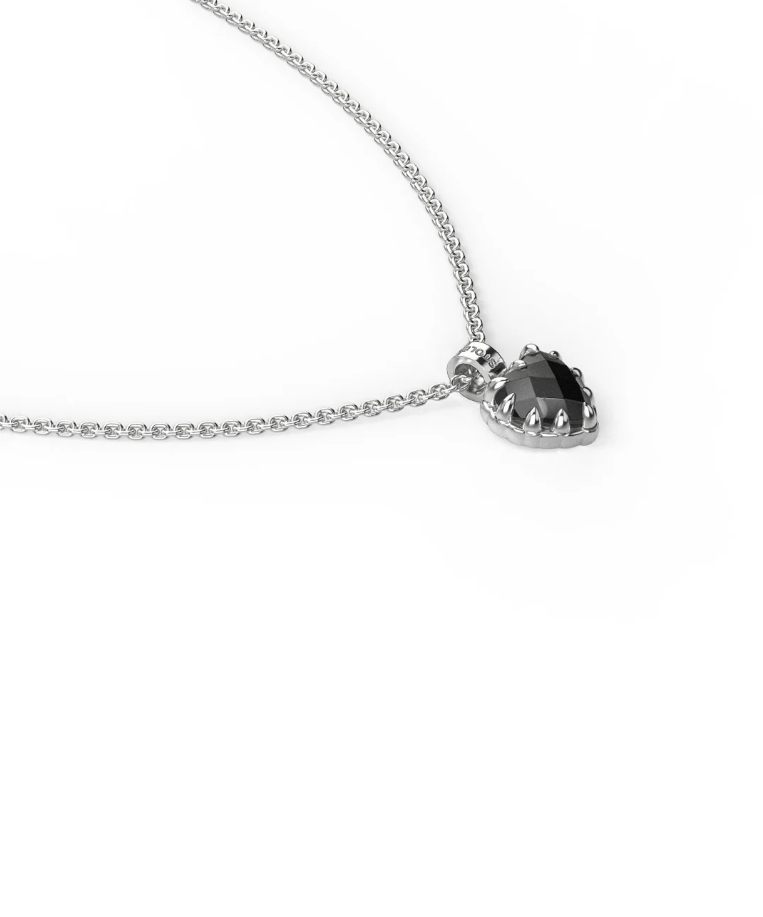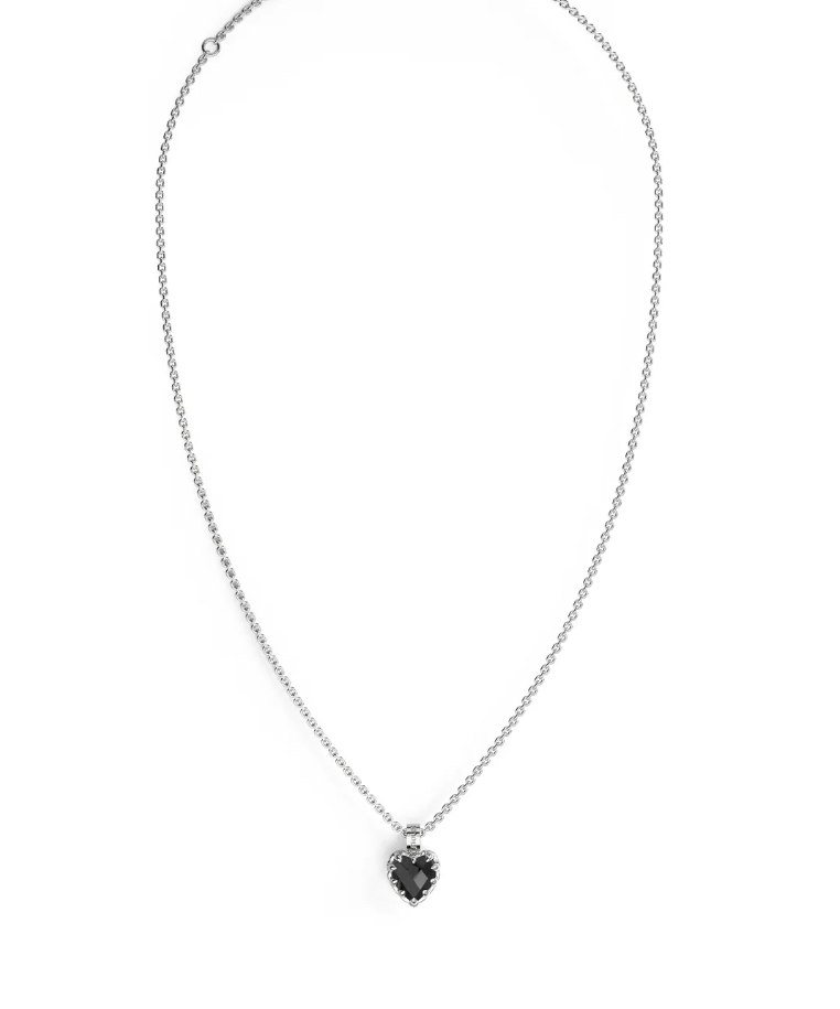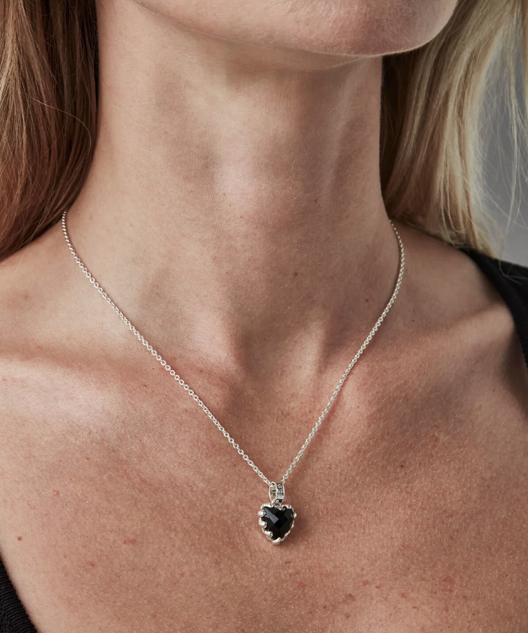 This delicate necklace features a moody onyx stone, facet-cut into a beautiful heart shape pendant suspended on a fine silver chain. Set in our bespoke, claw setting, made from solid sterling silver.