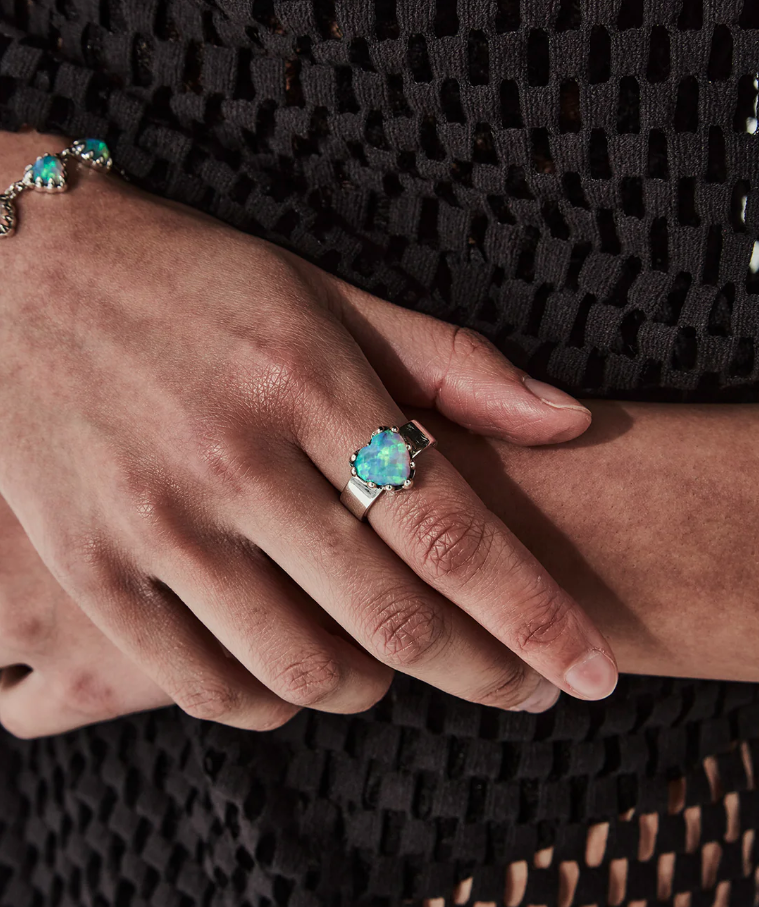 SGC's signature heart-shaped ring is reimagined with this luminous faceted Bello Opal stone that casts hues of blue, orange, purple and red.