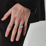This solitaire style ring is crafted from sterling silver with dark oxidised detailing. Due to the special stone setting the stone hues slightly differ between sterling silver and gold plated.