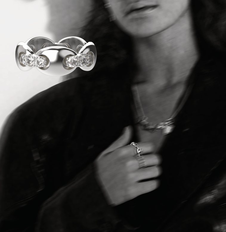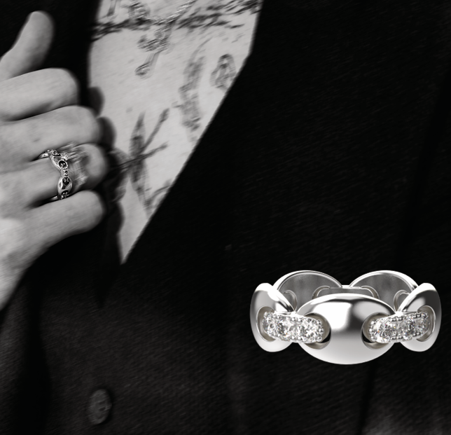 A study in contrasts, the Gothic Cross Mariners Ring merges classic shapes with subtle sparkle.