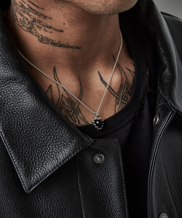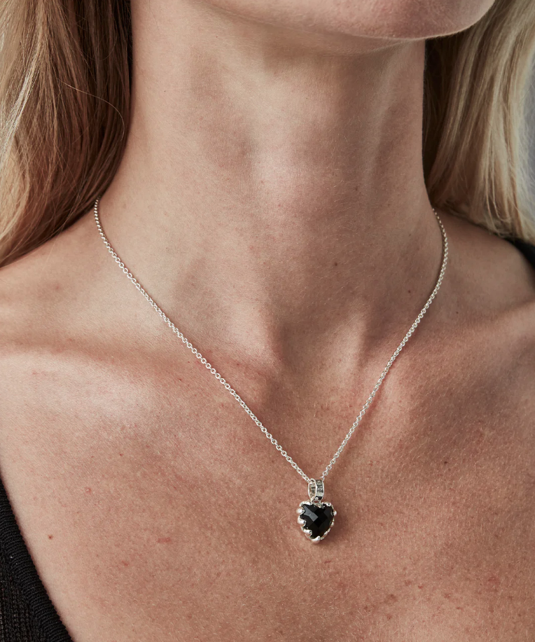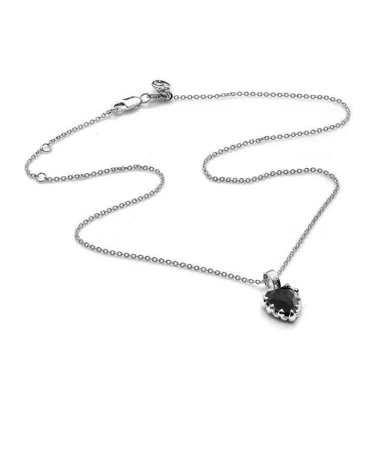 This delicate fine-chain necklace features a heart-shaped onyx stone secured in our claw setting.