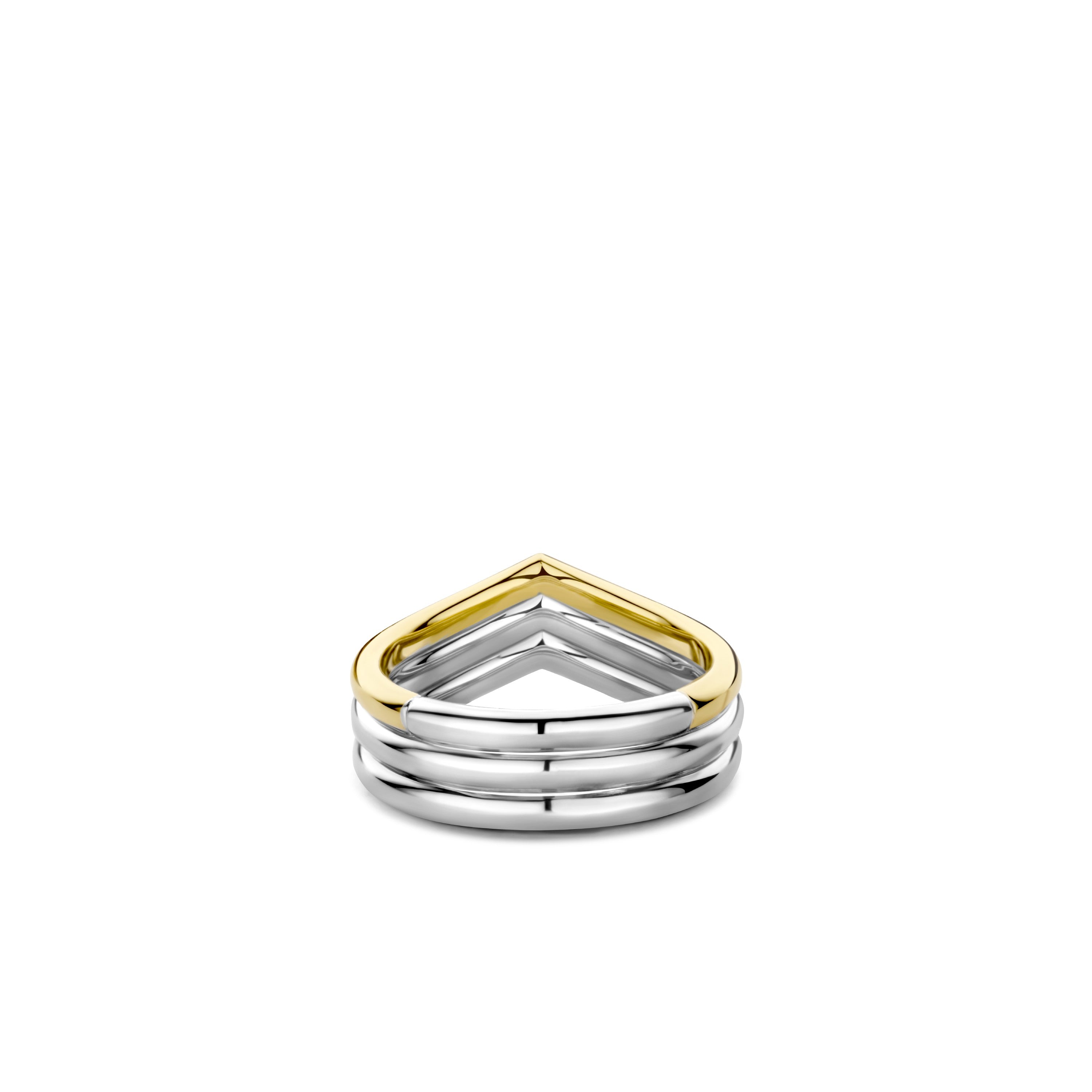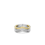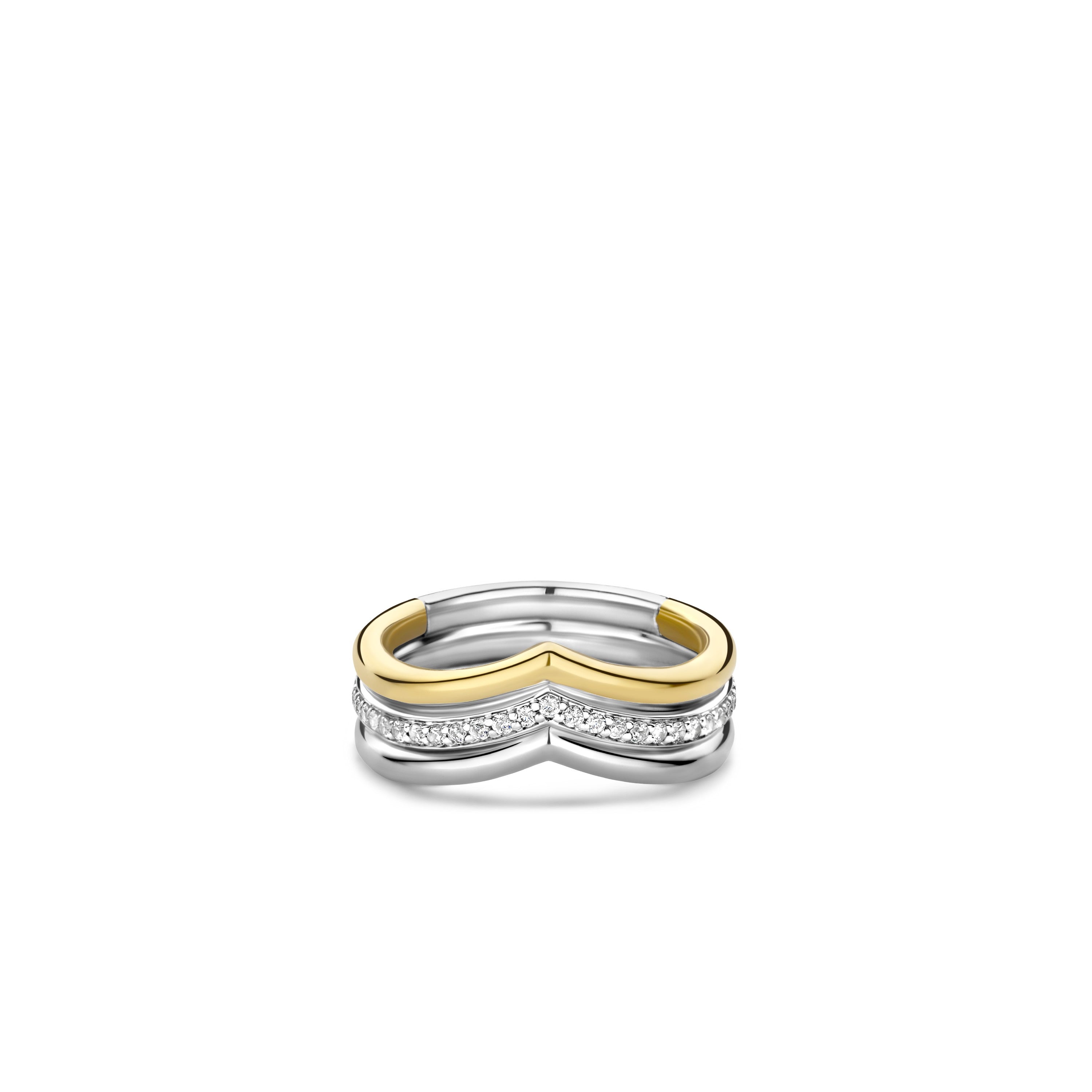 This Ti Sento gold-plated silver ring 12266ZY flaunts three V-shaped wishbone bands in silver, pavé cubic zirconia and gold-plated silver.