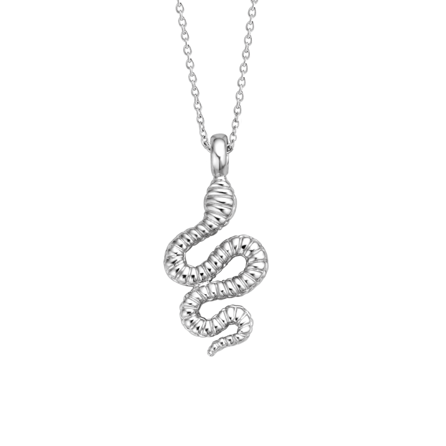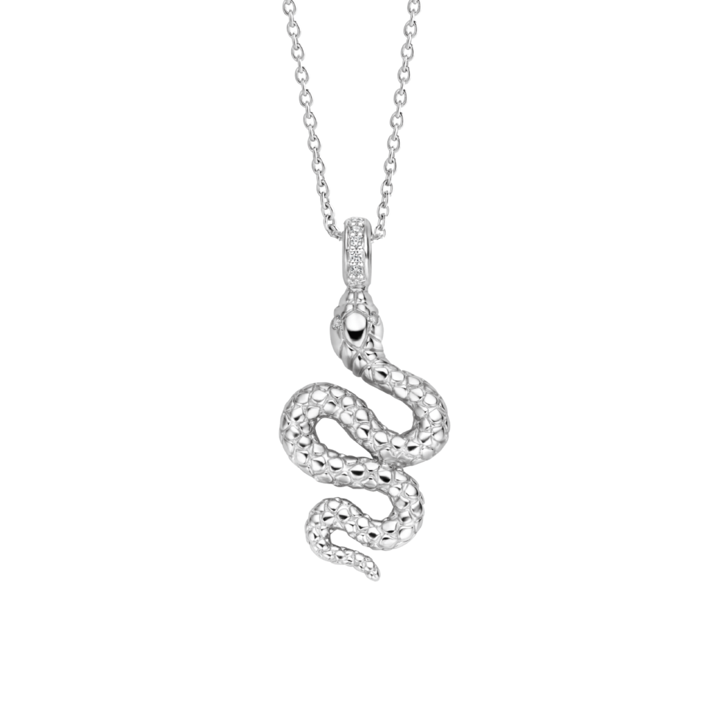 This Ti Sento silver necklace 3923SI has a sizzling snake as her centrepiece. Engraved with snakeskin detail and set with a pair of sparkling cubic zirconia eyes, she is sure to add that touch of danger to any outfit.