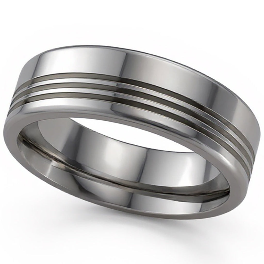 Titanium Flat Court Shape Triple Groove Design Band Ring 7mm SALE