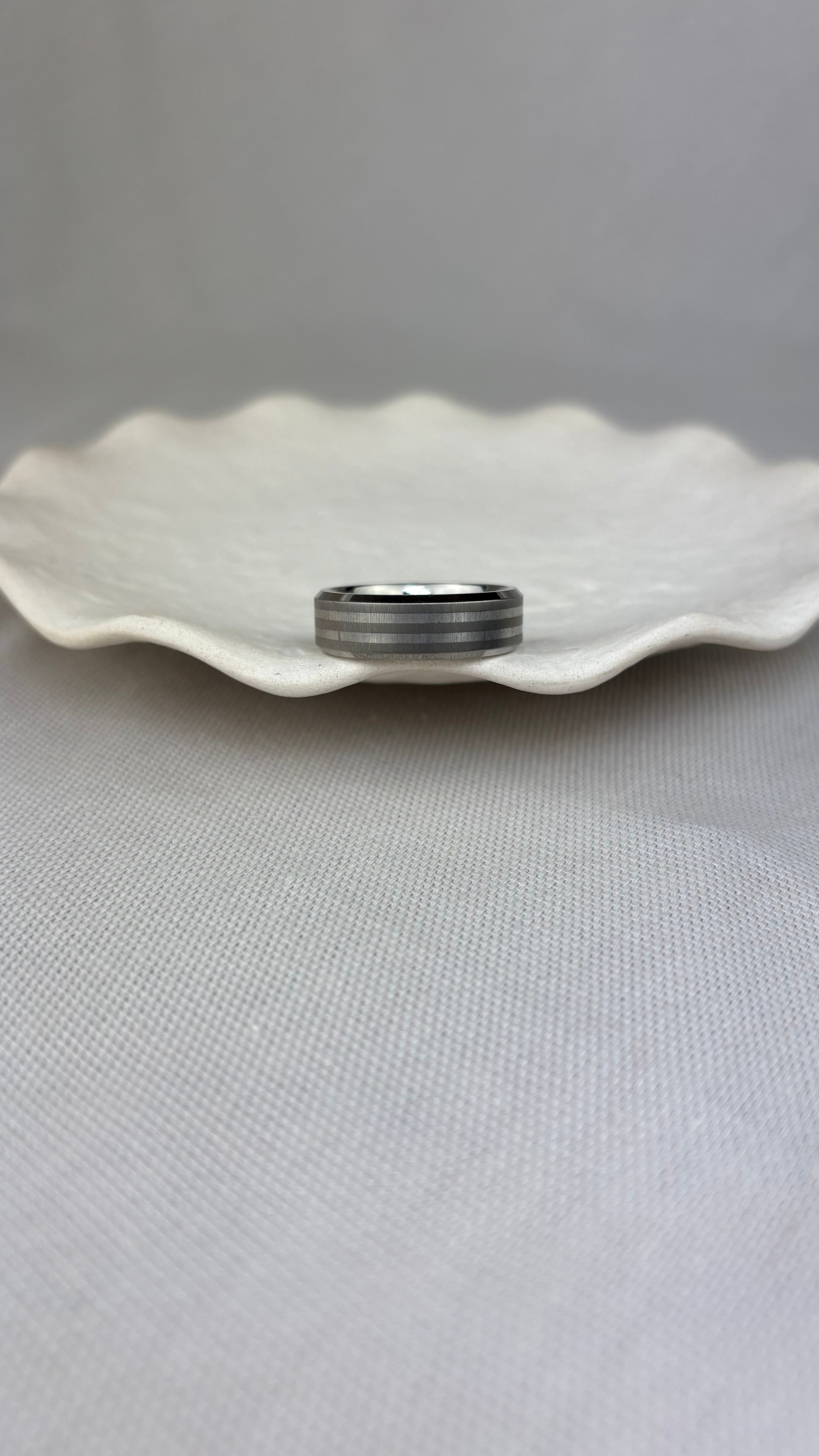 Titanium Silver Inlay Double Band Ring 7mm SALE