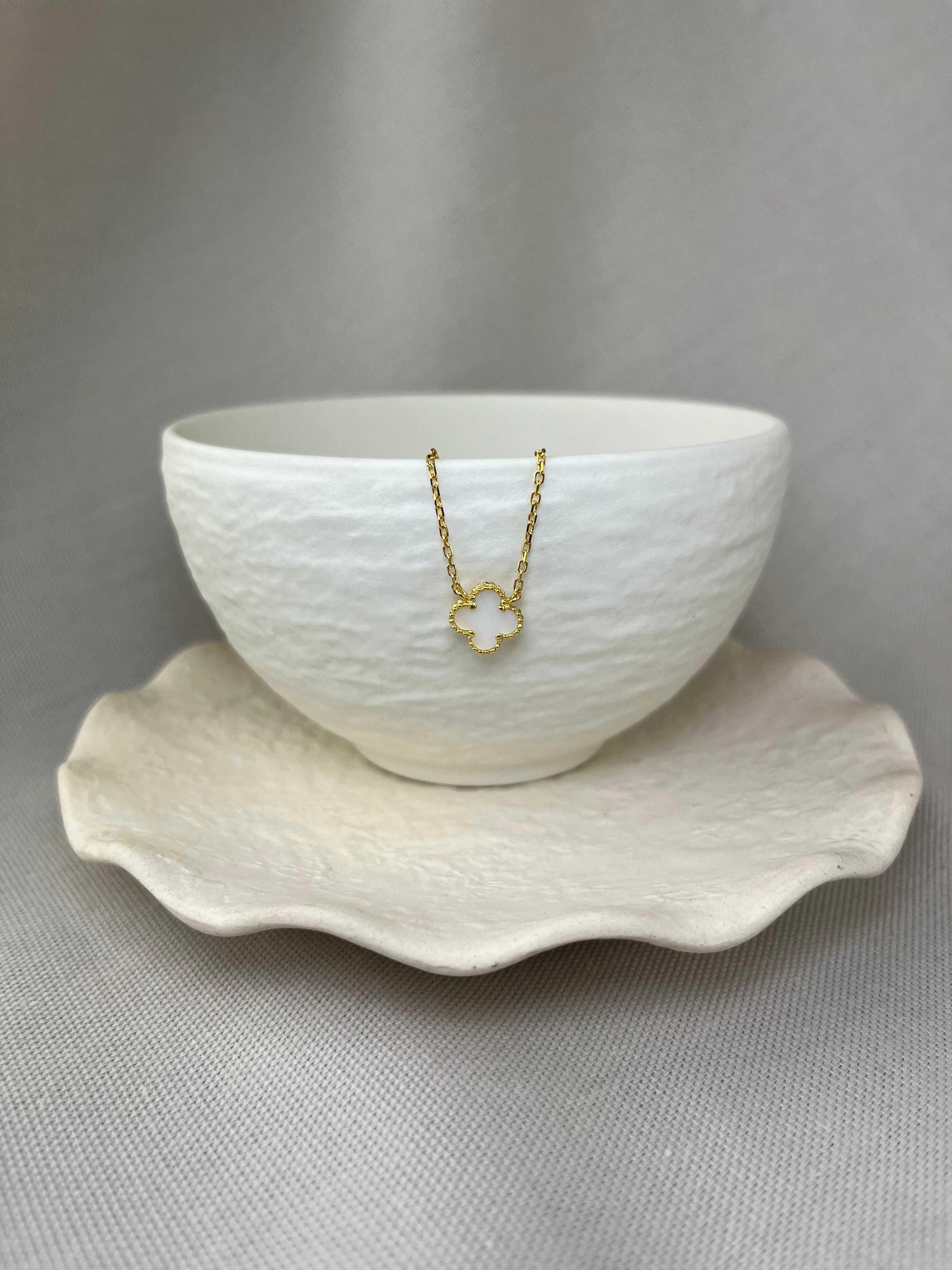 Vintage Design Sterling Silver Gold Plated Mother of Pearl Flower Necklace