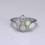 Vintage Design Sterling Silver Opal CZ Flower Cluster Ring