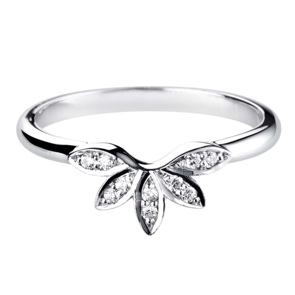 White Gold Diamond Floral Inspired U Shaped Wedding Ring