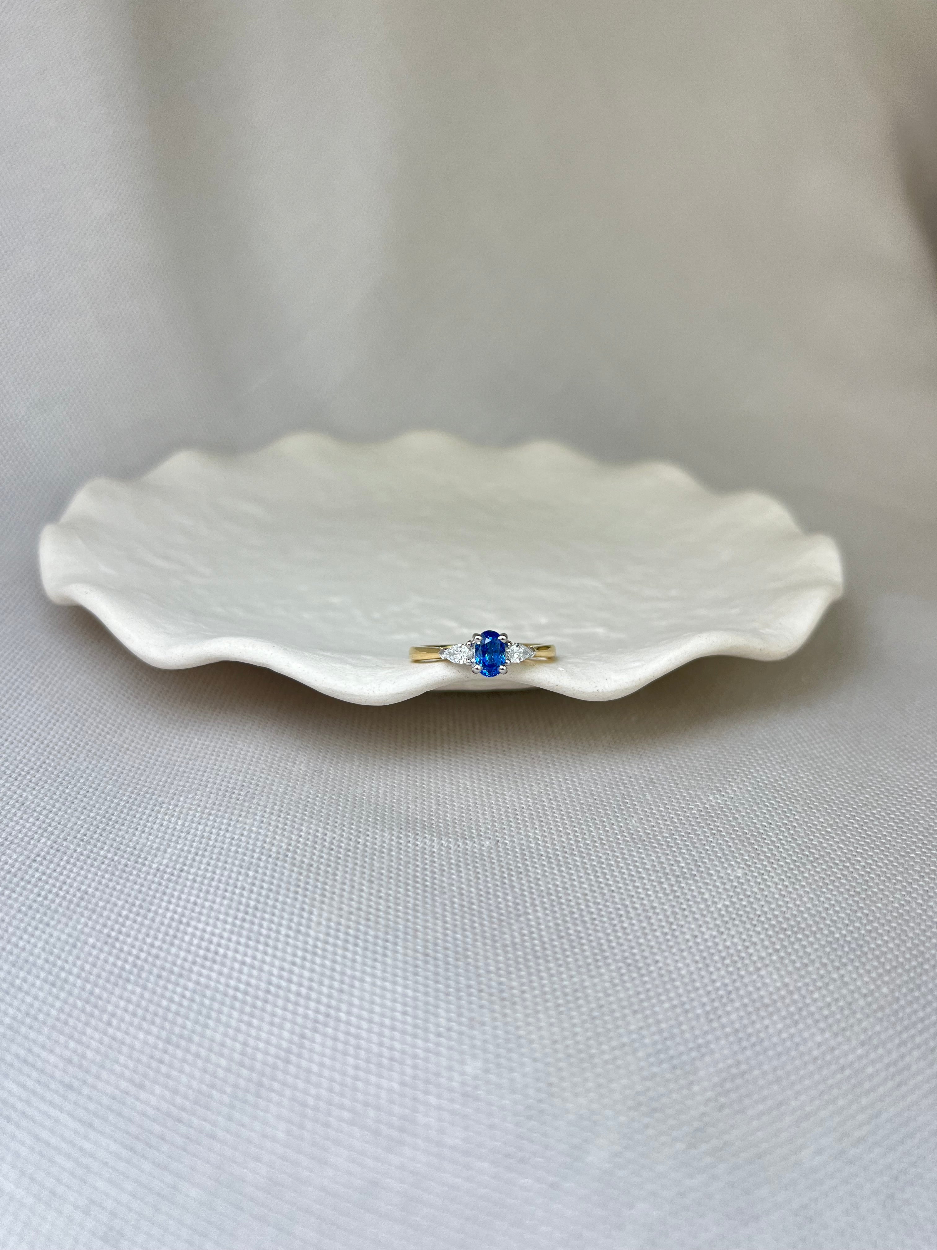 18ct Yellow Gold Blue Sapphire Diamond Trilogy Ring