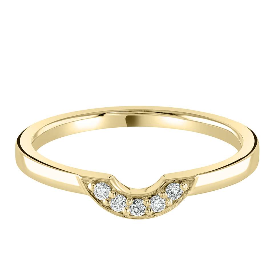 This example is a simple band with a diamond set U shape silhouette. This ring is available in 9ct and 18ct yellow gold, and you can choose to have diamonds either G colour with VS clarity, or H colour with SI clarity.